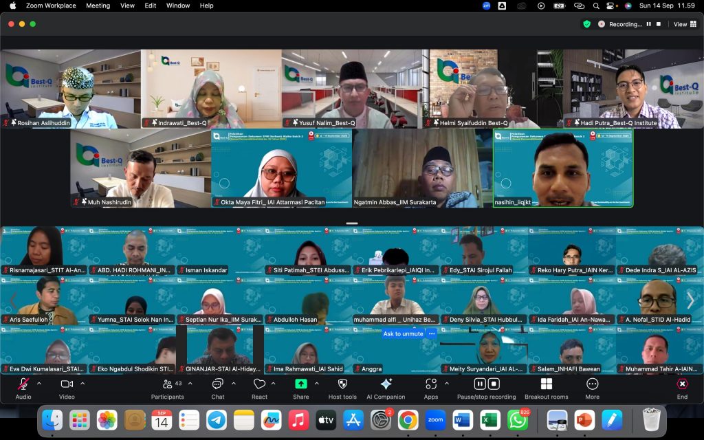 Manado, 12-14 September, 2025 — Lembaga Penjaminan Mutu (LPM) IAIN Manado kembali menunjukkan komitmennya dalam peningkatan mutu pendidikan dengan mengikuti Pelatihan Sistem Penjaminan Mutu Internal (SPMI) berbasis resiko terbaru yang diselenggarakan oleh Best-Q. Kegiatan ini dilaksanakan secara daring melalui Zoom Meeting, dan diikuti oleh berbagai perguruan tinggi dari seluruh Indonesia.