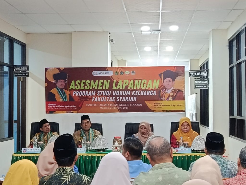 MANADO – Lembaga Penjaminan Mutu (LPM) IAIN Manado turut serta mengawal pelaksanaan Asesmen Lapangan (AL) dalam rangka akreditasi Program Studi Hukum Keluarga (Ahwal Al-Syakhshiyyah) di Fakultas Syariah. Kegiatan yang berlangsung khidmat ini dibuka secara resmi oleh Plh. Rektor IAIN Manado, Prof. Dr. Salma, M.HI.